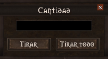 RECUERDA: Podemos dropear o tirar objetos presionando la tecla "T" en la configuración por default. Además, si apretamos Shift + click derecho arrastrándolo hacia la pantalla del juego, veremos la ventana para elegir la cantidad de objetos que queremos tirar. Estos objetos caerán solo debajo de nuestro personaje (no se puede elegir dónde).